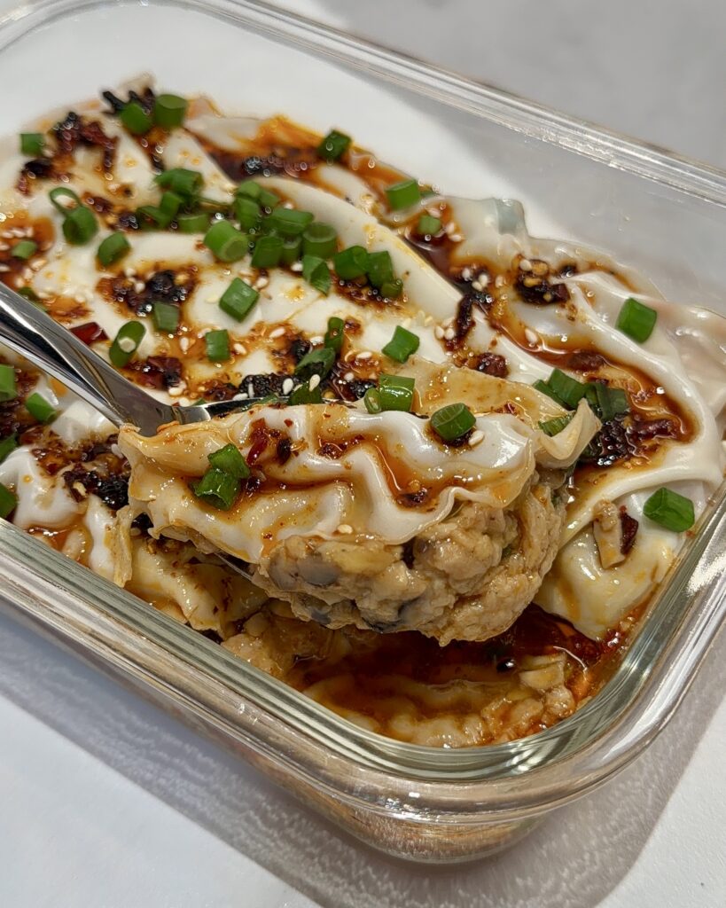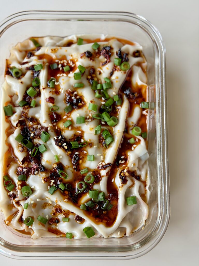 • chili oil sauce 2 tsp chili crisp, 1 tsp sesame oil, 1 tsp soy sauce, 1 tsp black vinegar